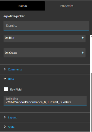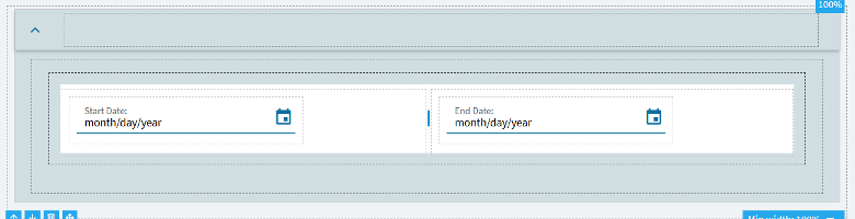 Once the grid is configured, connect controls to the filter view so as to collect values for sending to the server. In this example I have two controls that are capturing a date range to the filter view.