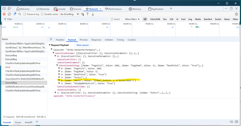 Below is the trace showing where filters are being sent to the server as apart of the execution parameters.